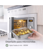 Contenidor amb base d'acer inoxidable d'alta qualitat apte per a forn, microones i fregidora d'aire.