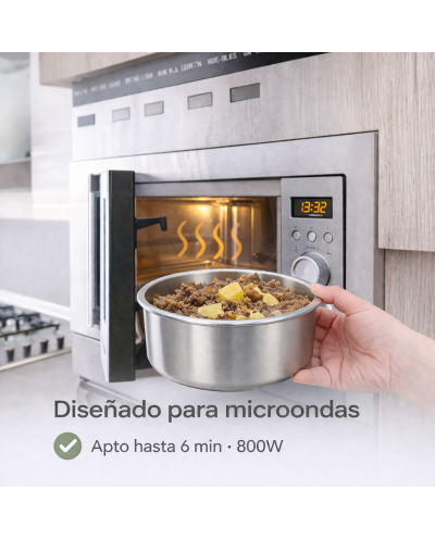 Contenidor amb base d'acer inoxidable d'alta qualitat apte per a forn, microones i fregidora d'aire.