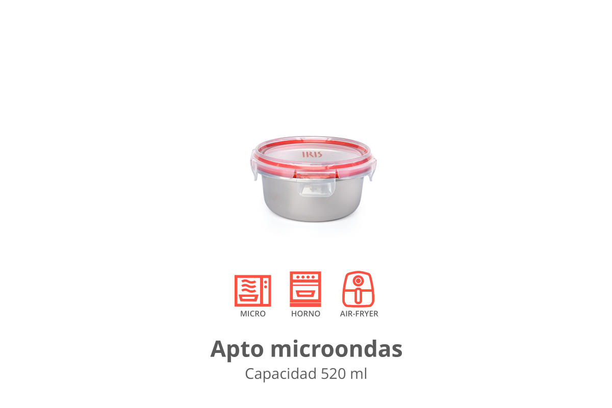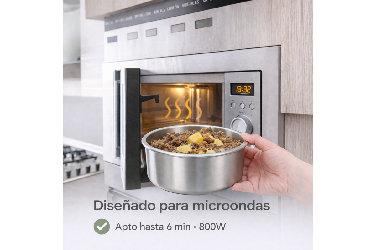 Contenedor con base de acero inoxidable de alta calidad apto para horno, microondas y freidora de aire.