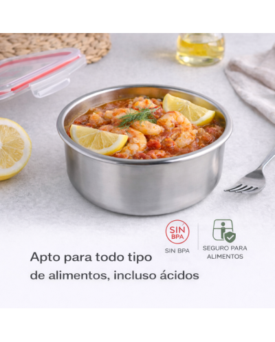 Contenedor con base de acero inoxidable de alta calidad apto para horno, microondas y freidora de aire.