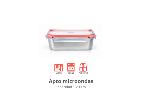 Contenant avec base en acier inoxydable de haute qualité adapté au four, micro-ondes et friteuse à air.